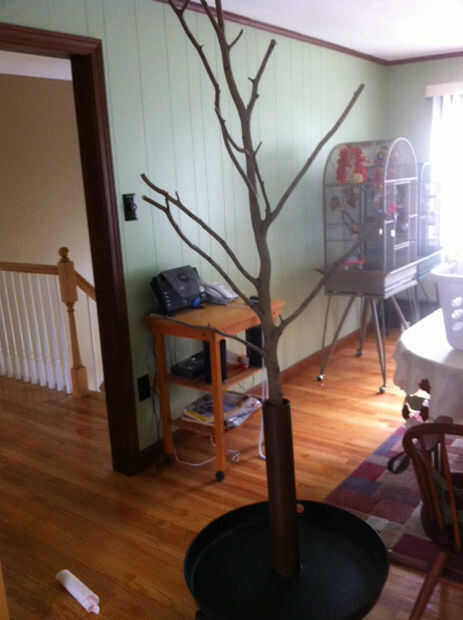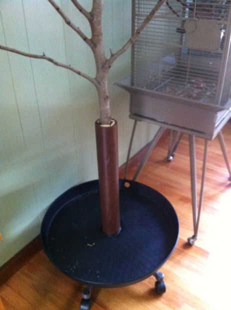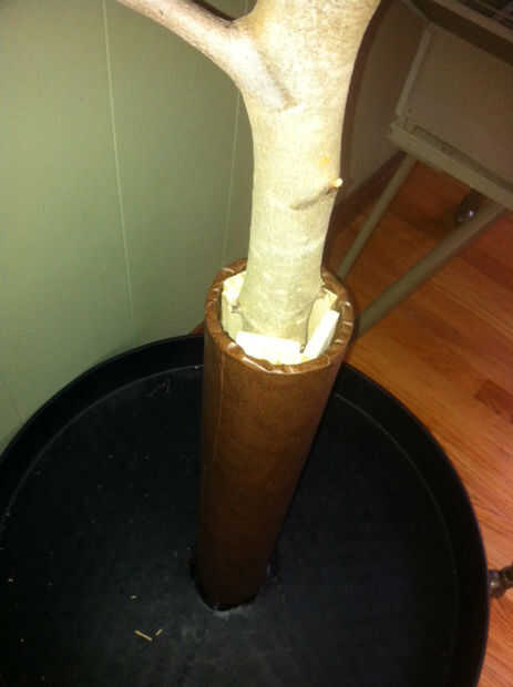 Solía calzas Ave seguro pino firme el árbol, ya que había mucho espacio entre el árbol y el tubo. Sólo martillo varios abajo en el tubo hasta que el árbol ya no se tambalea.