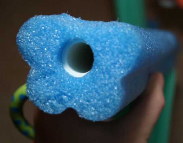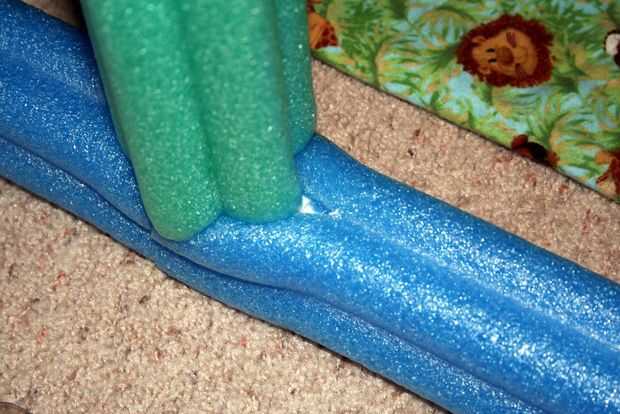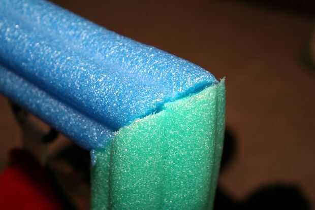 Para el revestimiento de "pie", usted necesitará cortar 2 pulgadas o tan la raja en la parte superior de la espuma en un extremo de tal manera que puede deslizarse alrededor de la articulación T y bajo la espuma de la canalización vertical de 18 pulgadas. Asegúrese de que esto está en el lado de la espuma donde no eliminas el pétalo extra, y que el corte no va a través de todo el camino.