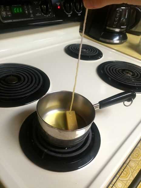 Si usted está haciendo una mecha de cuerda de algodón, derretir cera introducirlo en ella tres veces y déjela sentarse, poner minas en la nevera con un clip para colgar