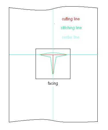 El diagrama muestra la línea de costura en verde. Cosí esta línea. Había reforzado cada rincón. La "T" se reducirán hasta las líneas de costuras.
