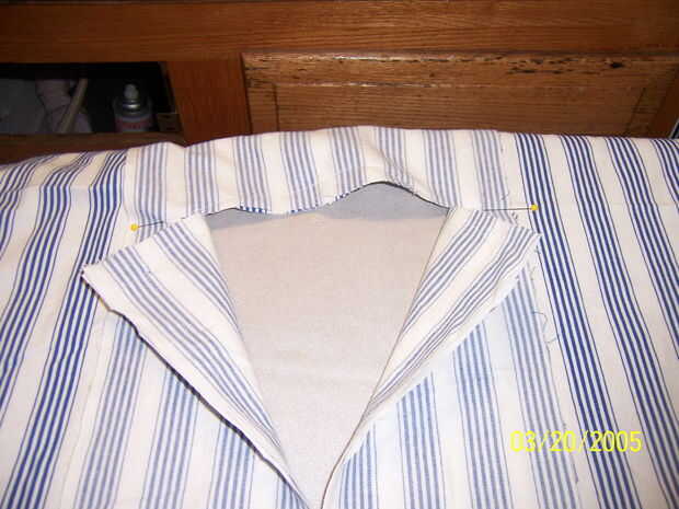 Había recortado las curvas a la costura. En las esquinas que forman las puntas en la abertura del cuello, corte las puntas diagonalmente, dejando la esquina costura intacto. Esto hará girar los puntos más fácil.