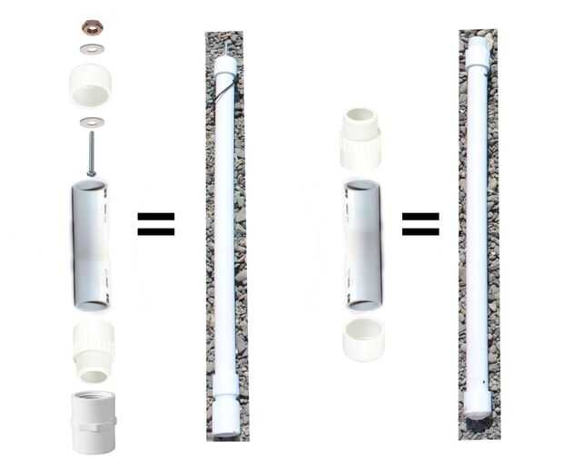 - Martillo en el adaptador macho a los otros extremos de los tubos con las tapas (los pernos en ellos).