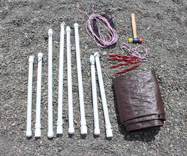 Los acoplamientos se utilizan para conectar las tuberías para que el conjunto puede ser fácilmente empacó. Cuando montado, hay 6' altos polos y polos 4' de altura. Tener la parte trasera de la vivienda inferior al suelo hace más sombra.