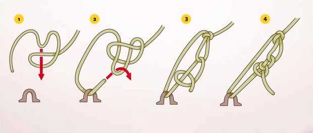 3. Con una persona sosteniendo un palo, amarre la parte superior de la varilla a través del lazo de paracord. Usaba el enganche de un camionero, pero también puede usar riostras anillos u otros accesorios camping lujo para conseguir el cable firmemente.
