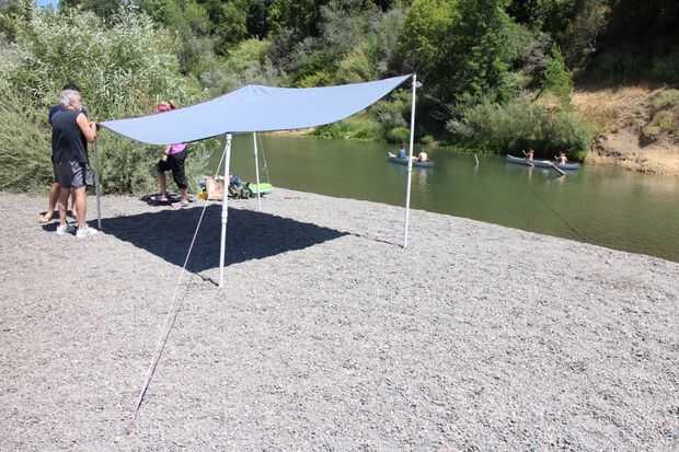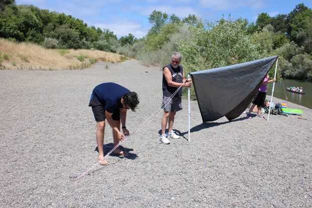 4. Repita el paso 3 para cada polo. Esto requerirá cierto grado de movimiento y ajuste de cada uno hasta que el refugio siente robusto.