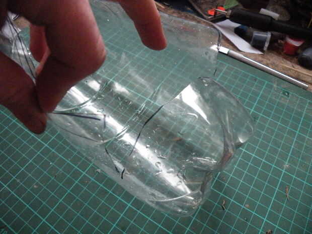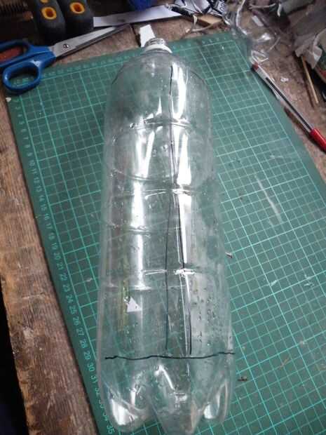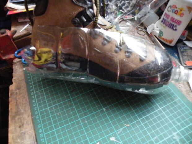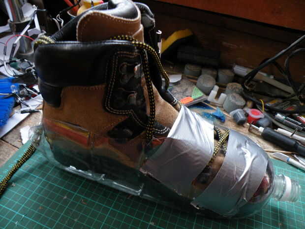 Si tus botas son grandes (en comparación con el tamaño de las botellas), puede que necesite cortar una muesca para alojar el talón.