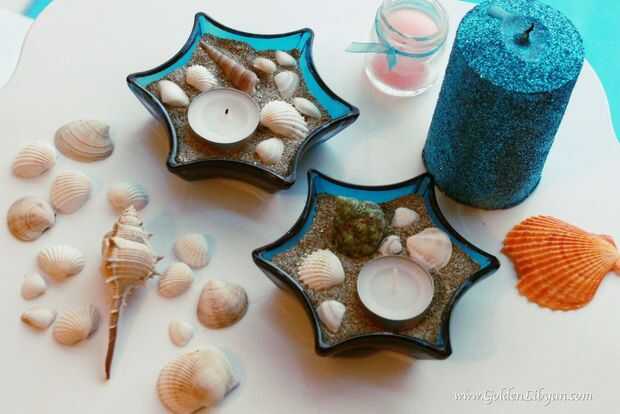 para hacerlo... sólo necesita algunas velas, playa de arena, algunas conchas y un plato pequeño o puede utilizar un frasco de vidrio vacío vela.