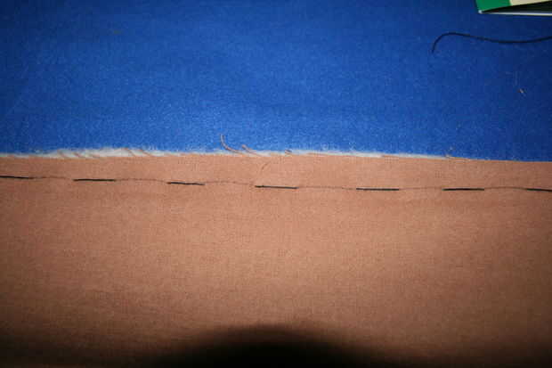 Unir los trozos es un trabajo fácil y rápido... Si tienes una máquina de coser de trabajo.  Empezar juntando los lados de derecho de azul azules y ligeros oscuros allí debe ser 37" de la luz azul.