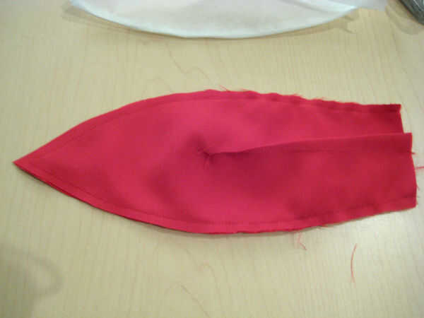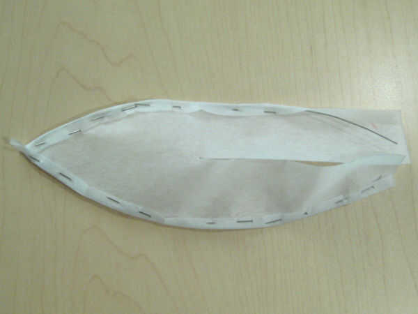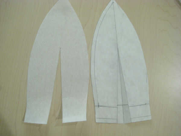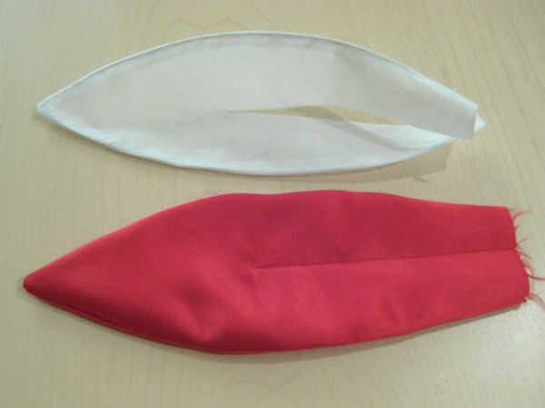 Corte 2 piezas de oído de entretela pesada (recortar el dardo de la entretela para reducir volumen)