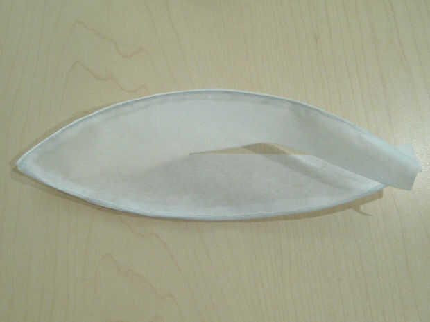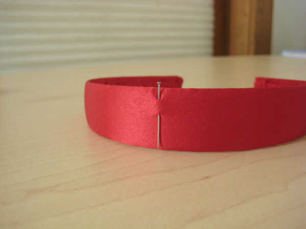 • Instale el oído a la diadema coser en el interior de la diadema. El pin marcado el punto medio debe actuar como un punto de referencia en la fabricación de las orejas incluso y bien ajustado sobre la cabeza. Cada oído debe ser la misma distancia de la marca venda.