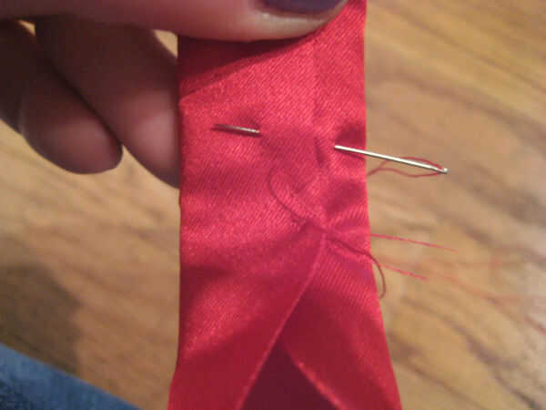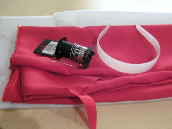 • Cortar un trozo de raso lo suficientemente grande como para envolver alrededor de su cabeza.