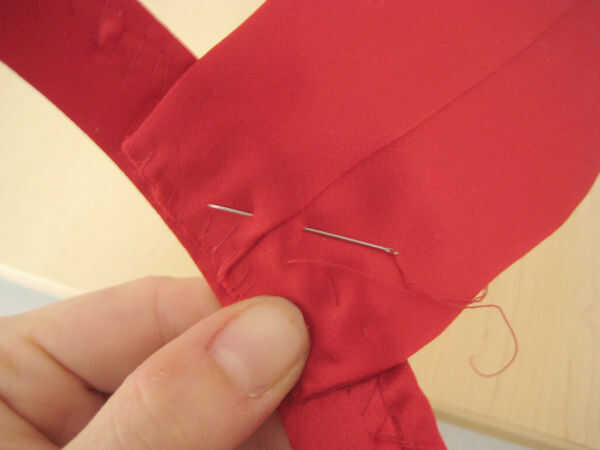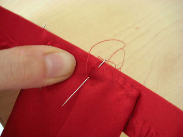 • Mano coser la costura de la entretela hacia abajo con el hilo atrapado en el redil.