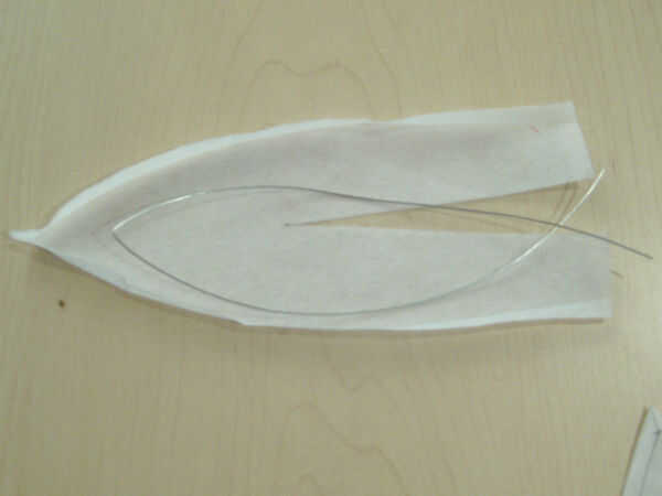 • Cortar un trozo de alambre para ejecutar a lo largo del borde doblado de la entretela.