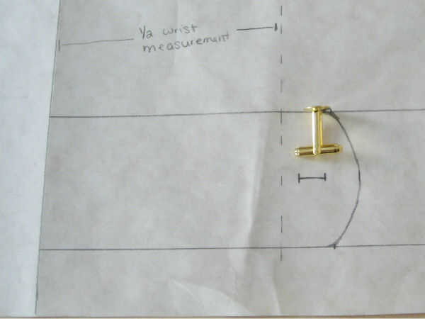 • Con la mancuerna, determinar qué tan grande debe ser el agujero de botón. Crear una línea curva que es atractiva para usted para el exterior "flap" de la banda francesa.