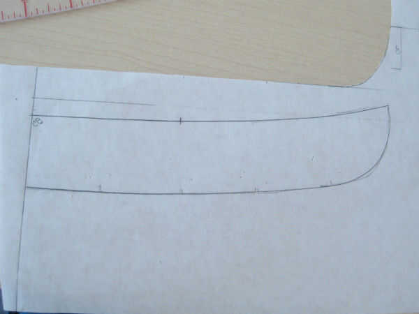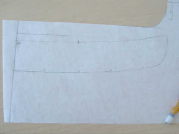 • Coloque otro pedazo de papel en el cuello y trace la línea CB, el borde superior de 1/4 "menos CF y dibuja un ala de collar que es atractivo para usted. El wing collar debe ser más ancha que el soporte del cuello para ocultar el soporte.