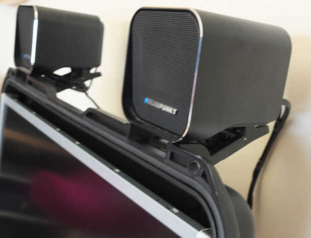 Como acertadamente sugiere en los comentarios (¡ gracias!) un conjunto de altavoces estaría bien... así que propuso volver a la oficina de pequeños altavoces de la TV compraron el año pasado: