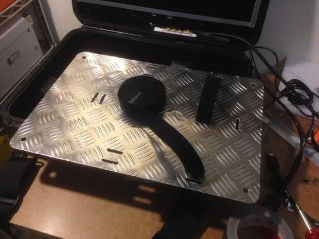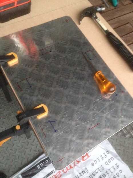 Una hoja de aluminio es la base, coloque la consola y marcar los puntos de fijación.