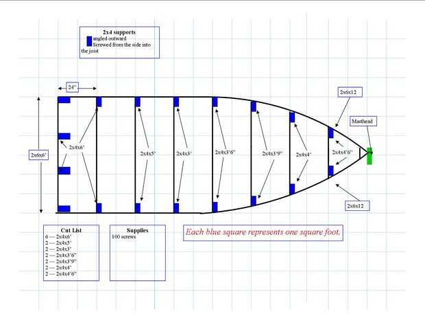De hecho, todo el 2x4s que están adelante de donde comienza el arco de curva en son en ángulo hacia afuera.