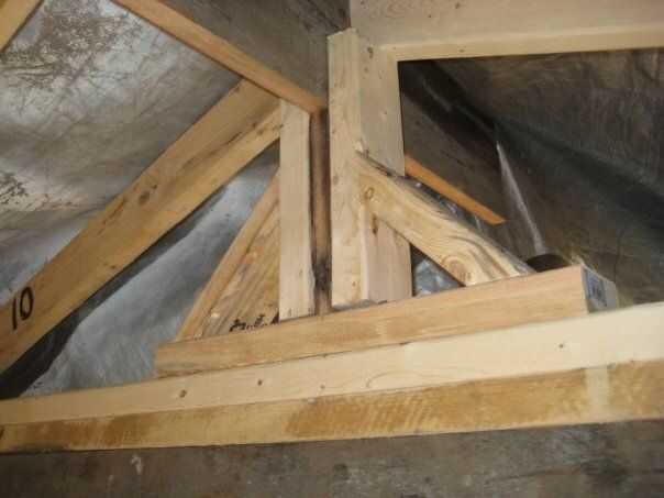 Construí este pequeño soporte para sostener la viga caballete. En la mayoría de las casas, la cumbrera es un lugar para clavar las vigas del techo para. No tienen peso. Se trataba de configuración como una verdadera viga para ayudar a soportar parte del peso de la cubierta.