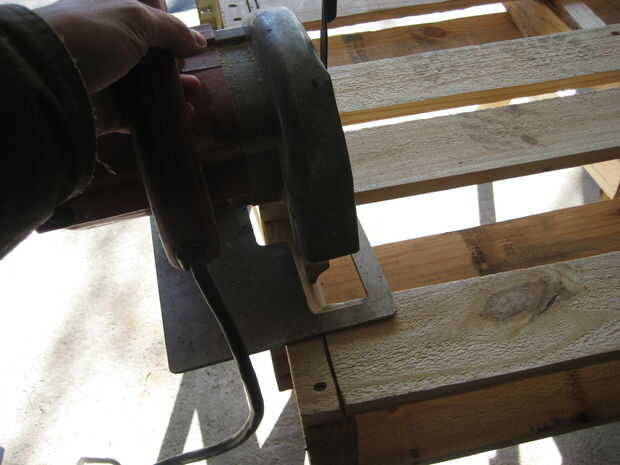 Comprobar hacia fuera este Instructable y Video de Youtube sobre cómo hacer un banco de hueso de arenque con dibujos de la madera de palet!Este proyecto es fácil y sólo requiere unas cuantas herramientas: Sierra circular, taladro, línea de tiza y pis