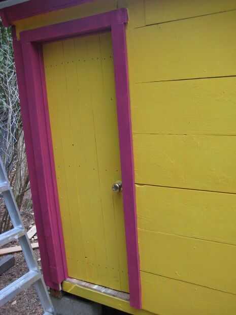 Aquí está la puerta de atrás. He hecho de un panel de la cerca vieja. Usé la escoria final del 1 x 4 y 1 x 6 en el interior, instalar perpendicular a las barras verticales.