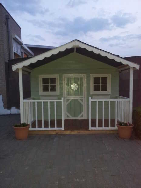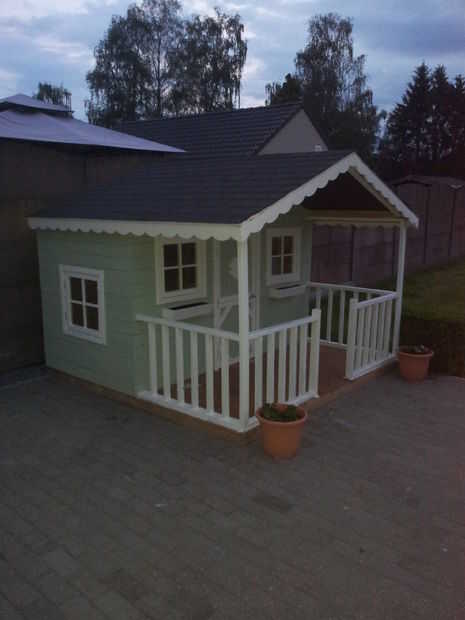 Después de poco de pintura verde/blanco este es mi resultado final en el exterior. Lo último en el exterior que tengo que hacer es pintar el piso, pero no sé qué color. ¿Alguna sugerencia?