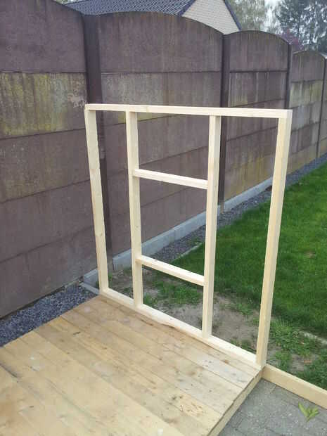 En la primera imagen se puede ver cómo crea el marco de la pared. En el centro es una ventana de 50 cm x 50 cm (19,7 x 19,7 pulgadas) de apertura. Las dimensiones de la estructura de la pared son 130 cm x 130 cm (51,2 pulgadas x 51,2 pulgadas). He utilizado las vigas de las plataformas donde los tablones donde al.