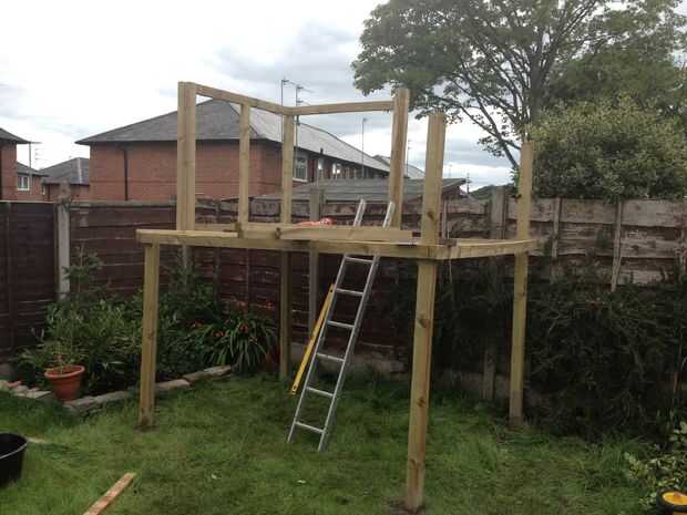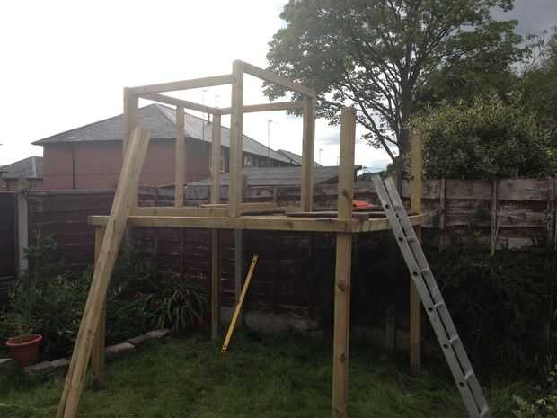 realmente quería un fuerte un día y me puse a investigar planes de playhouse/fort. Mi padre tenía algo de madera a la izquierda de un trabajo que hizo por lo que decidimos construir un fuerte de la 2 historia. Tomó aproximadamente 2 meses y cuesta un