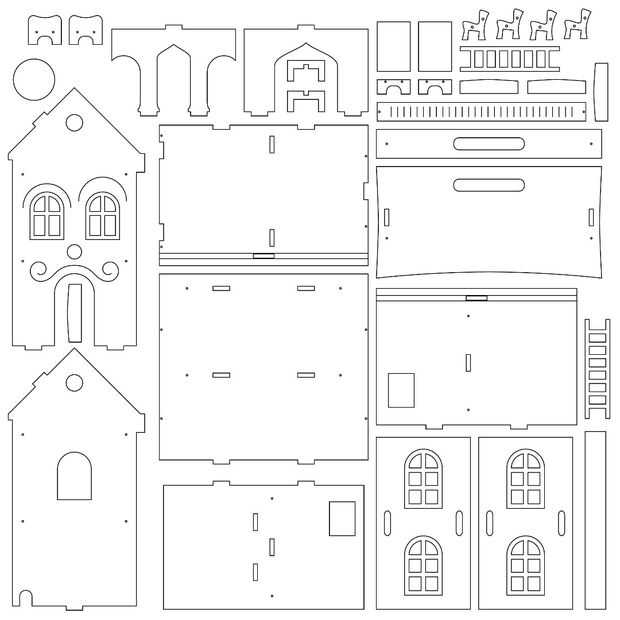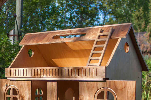 Esta particular casa fue hecha por la corte en la fresadora CNC con broca de 4mm. Pero creo que te puede láser cortar también. Para la fijación de los detalles usé tornillos de 25mm. La casa acabada parece sólido y robusto.