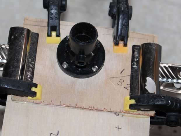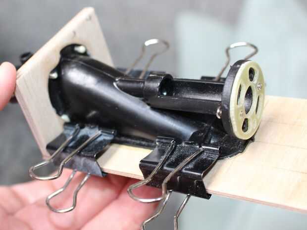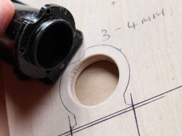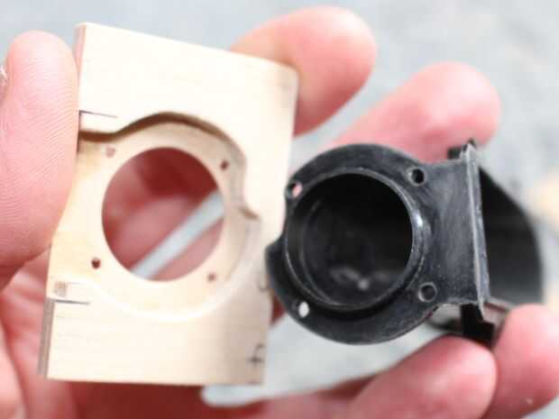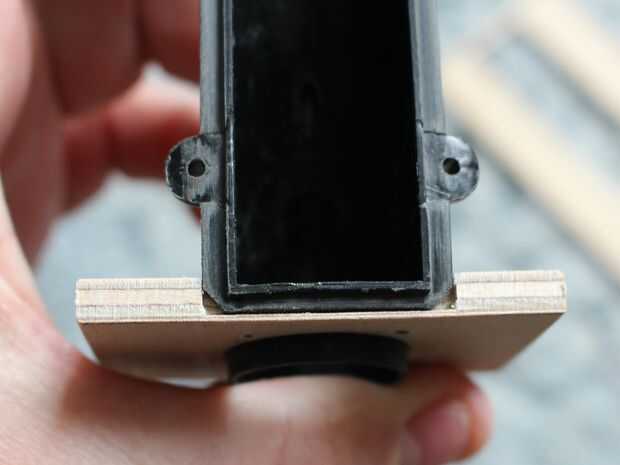 Para montar la unidad en el casco que solo tienes que cortar un agujero para permitir que la madera a la ranura en el lugar, luego una vez que estés satisfecho con el ajuste conforman otra sección de la madera y el palillo a la superficie de la pieza de casco (de madera) permitir que la unidad para ser bañadas en el agujero.