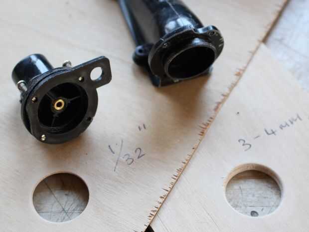 Esto es un poco lento e incómodo. Supongo que el barco original es vacío formado y muy fino, y así cuando vengan a encajar esto en un barco el travesaño debe ser muy delgada para permitir que la boquilla real que todavía caben en el lugar correcto. es decir hay una recesión en el inyector y si el espejo es demasiado grueso entonces perderá esta alineación. Por esta razón hice el travesaño de dos diferentes trozos de madera contrachapada, 1/32" y 1/8" 1/8" refuerza la 1/32" las imágenes como lo mejor que puedo describir.