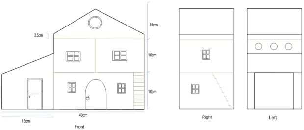 Por eso, no insisto en las mediciones de la casa, si alguien quiere construir uno como este, usted necesita tomar sus propias medidas de los habitaciones/espacios diferentes que quiere...