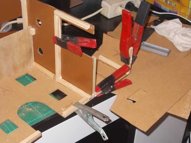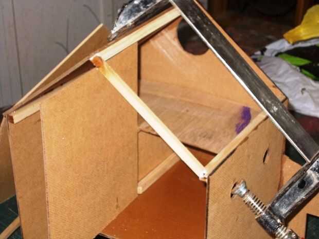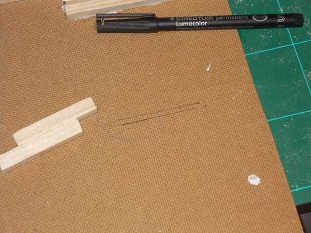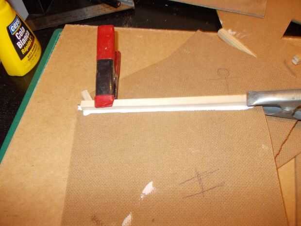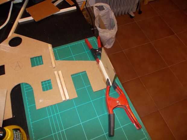 Al interior paredes, utilizar dos trozos de listón de lado a lado con una separación de pocos milímetros donde puedo hacer la pared (ver fotos 6 a 9).