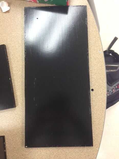 El último corte que hice fue para la plataforma de juego. La plataforma de juego irá entre los paneles de apoyo laterales de plataforma juego. La plataforma de juego se cortó con una sierra de mano. La plataforma de juego debe ser de 7" de largo y 15" de ancho. La longitud coincide con la longitud de los paneles laterales de apoyo. La anchura permite que haya dos juegos de ancho ve por encima y por debajo de la plataforma.