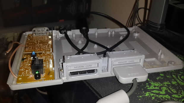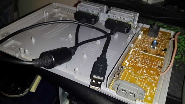 7. Utilice pegamento caliente para fijar el resto del adaptador a la cubierta - teniendo cuidado de que usted será capaz de atornillar la caja hacia la PlayStation.