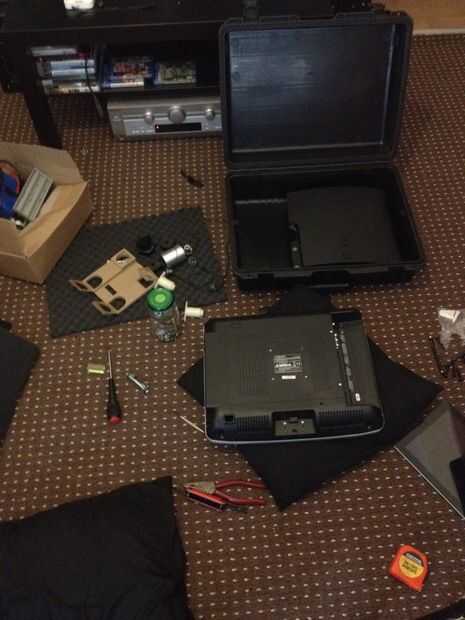 Mi idea era montar un Tv pequeño y un playstation 3 dentro de una caja robusta con extras como ventiladores, luces y esas cosas y poder llevar conmigo en las noches de juegos con sus compañeros. La TV que era algo tenía por ahí, era 1080i HD así pero no increíble. Me bodged mucho en este instructable como no tener un gobernante que aspira a mucho, así que utilicé una cinta métrica y un poco de buena suerte viejo.