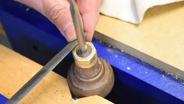 Plaza Centro punta de punzón con una virola de la tuerca de cobre amarillo de la marca (3 / 3 paso)