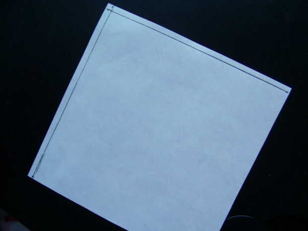 Esta caja se hace de una tapa y una base. En orden para poder encajar en la base sin deformar la tapa, la base tiene que ser ligeramente más pequeño que la tapa. Para ello, dos laterales de la Plaza necesita ser cortado. Puede marcar los bordes del papel y luego utilice una regla para dibujar líneas para que sepas dónde cortar. Las imágenes muestran cómo he marcado mi papel y las líneas de corte.