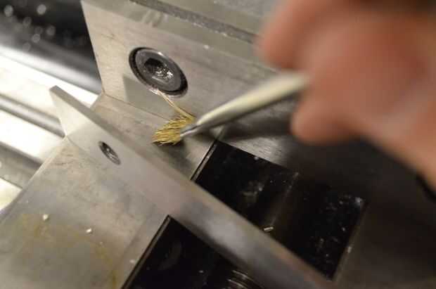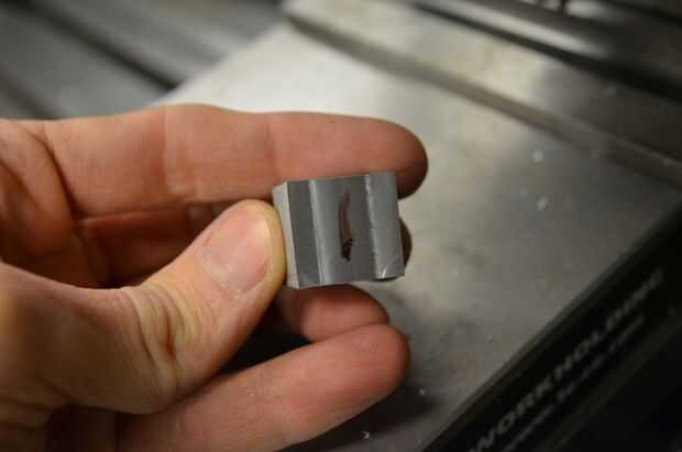 Apague el molino y retire la pieza de trabajo de la prensa. Utilice una lima de metal para quitar las rebabas y marque la cara recientemente mecanizada con el número '1'. Nos intentará todas las otras caras de la máquina para que estén en la orientación correcta con relación a esta cara, que será más 'true' (todos los demás están sujetos a alguna pequeña cantidad de error debido a las imperfecciones y el desalineamiento en el molino.