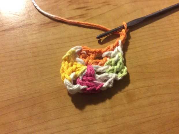 Ss en próximo sp, 5ch (cuenta como 2 canales 1dc), 3dc en mismo sp * 1ch, saltar 3 dc [3dc, 2ch, 3dc] en próximo sp; REP de * dos veces más, 1 canal saltar 3 cc sts, 2dc en mismo sp como 5 ch en Ruego a ss redondos, en 3 de 5-ch