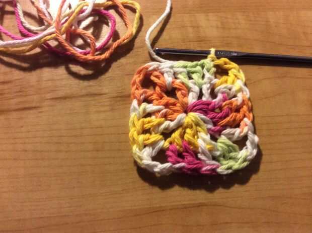 he creado esta abuela cuadrados afganos durante la semana de Navidad mientras estaba de vacaciones en nuestra 5ta rueda.Tomé una bolsa de hilos multicolores ycreado esta plaza 6 granny redondo recortada en negro.He terminado la mañana de Navidad.