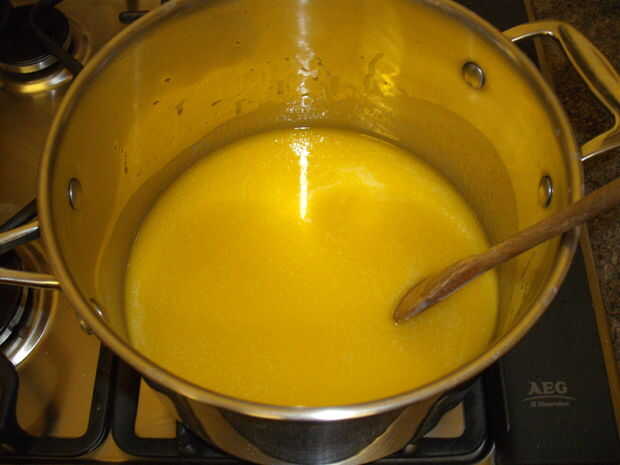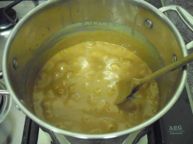Una vez que la mezcla empiece a hervir, ajustar un temporizador de 6 minutos y revuelva constantemente. Lo que buscas es un cambio en color de amarillo a caramelo! y esto debe ser después de hervir durante unos 5-7 minutos. Se trata de una parte no dejar que los niños ayudan con, es más caliente que el agua BEWARNED hirviendo.