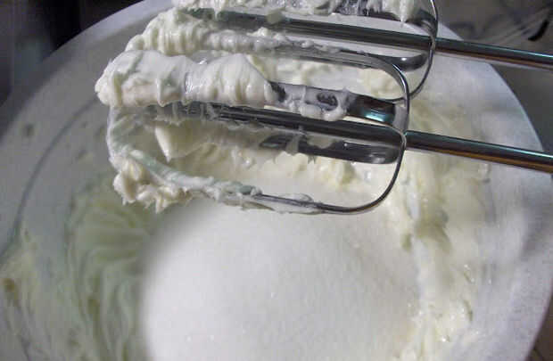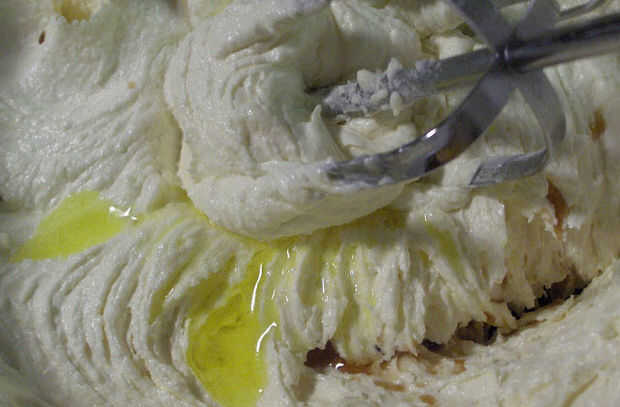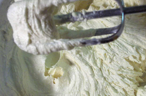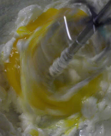 A velocidad media, crema de mantequilla y azúcar hasta que quede suave. Añadir los huevos, uno a uno, batiendo bien después de cada adición. Añadir esencias de vainilla y limón. Añadir la harina y mezclar bien.