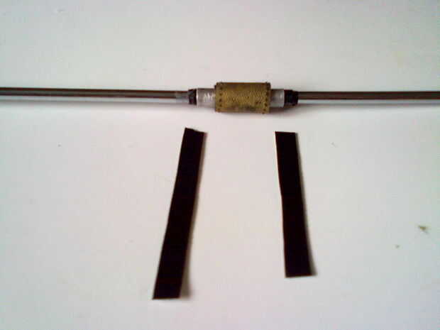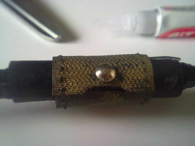 Pegar dos tiras de cuero eco negro al lado de la cinta de velcro.
