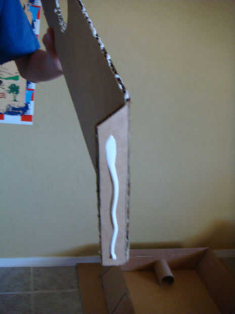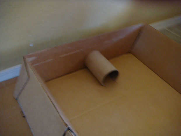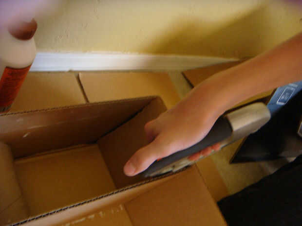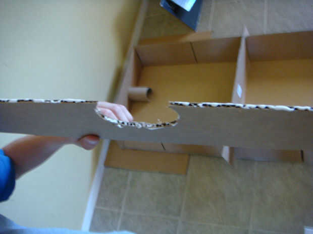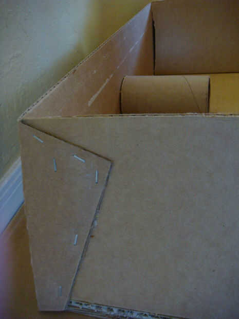 El extremo posterior de la caja es 7 "x 29", es la parte superior de 6 "x 22,5" y el frente es de 6 "x 21,5" la pieza posterior tenía lengüetas para pegar también un lugar a la caja en lugar de la grapa, la parte delantera tenía lengüetas en el interior que fueron utilizados para el pegado y grapado. La parte superior tiene pegamento en los bordes. Una vez que todas las piezas estaban en su lugar deje secar durante un par de horas.