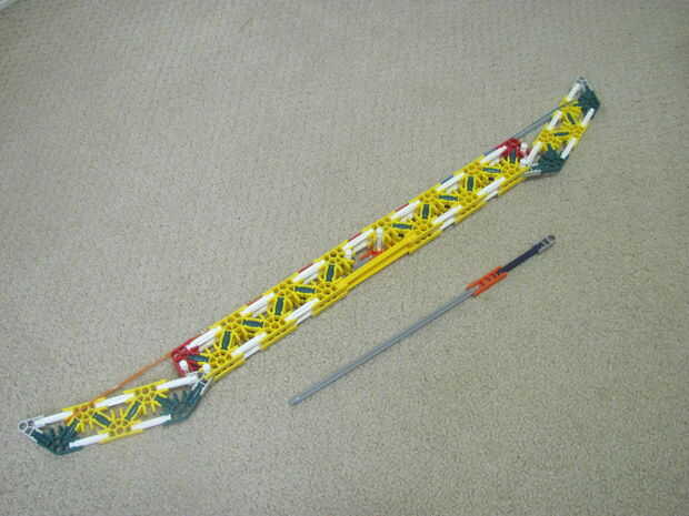 esto es un arco de K'nex totalmente funcional que hice recientemente. Como se puede ver en las fotos, se pliega pequeño bastante para caber en una pistolera de la pierna o envoltura, que no muestro aquí. Es bastante fácil de hacer por mirarlo, así que no hacer instrucciones paso a paso. Por favor exusa mi horrible fotografía, pero estoy usando cámara cursi de mi papá porque murieron de las baterías. Será mejor en el futuro.