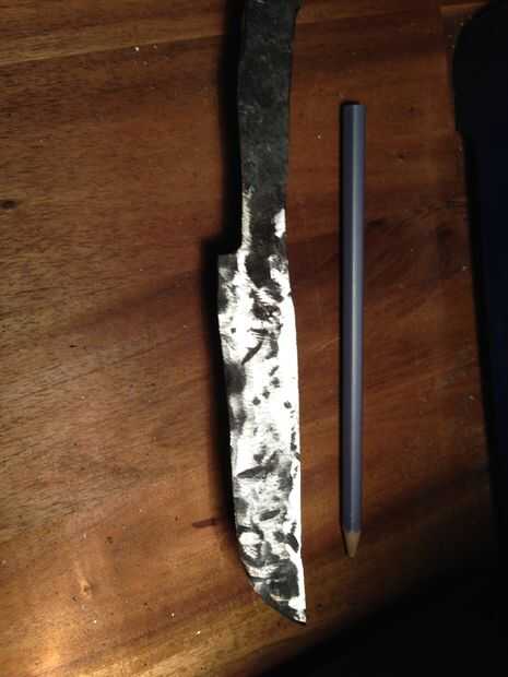 The process of forging a knife can be broken down into several steps. El cuadro es sólo del proyecto terminado, pero para aquellos que quieren saber más aquí está.En primer lugar está martilleando el acero en la forma áspera deseado. Empecé con una b