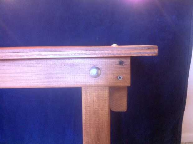 Ahora que todo lo demás es a abrir la tabla completamente y perforar un 3/8" a través de todo el asunto. Esto le permitirá ejecutar un perno largo de cabeza a través de la superficie de la mesa y la conexión de la viga en las piernas, bloqueo todo juntos.