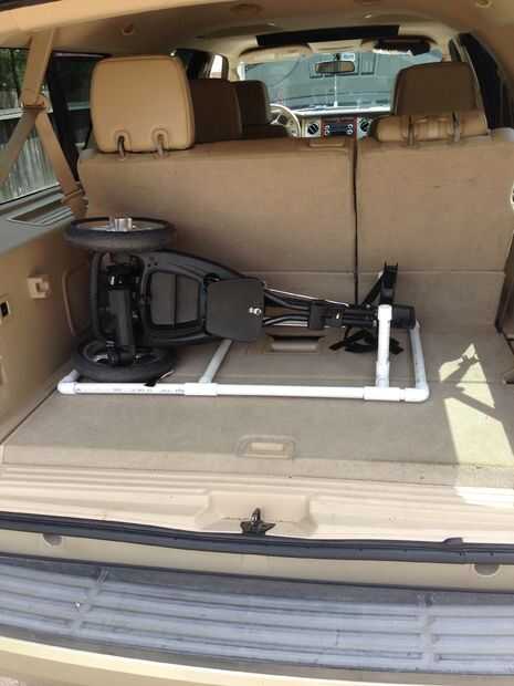 Las roturas de la cosa entera abajo/fijan en unos 30 segundos y encaja perfectamente en la parte posterior de mi SUV.