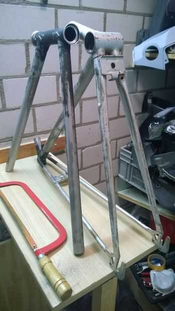 ¡ Felicitaciones, has pasado el punto de no retorno! Ahora tienes una bicicleta desmontada con dos boquetes en su geometría y dos trocitos de tubo. No tire los pedazos de tubo hacia fuera! Vamos a utilizar en el paso siguiente.